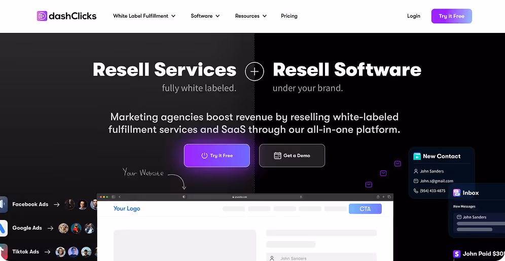 DashClicks offers a white label platform for marketing agencies to manage clients, reporting, fulfillment, and automations. It’s designed for agencies that want to systemize operations and deliver marketing at scale. DashClicks provides high quality solutions that enable agencies to deliver professional and scalable services to their clients. The platform also offers comprehensive training resources to help agencies onboard staff and clients efficiently. Additionally, DashClicks is built to maximize client satisfaction through streamlined operations and detailed reporting.