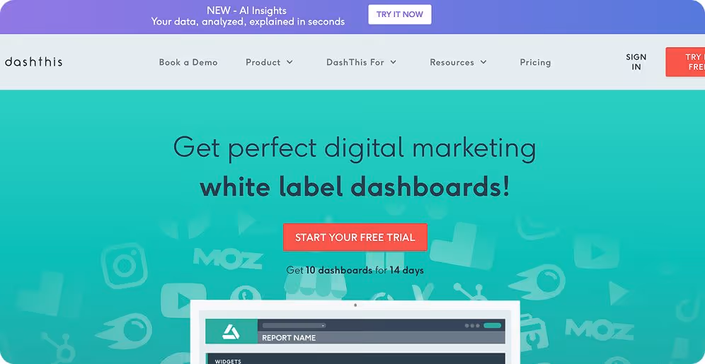 DashThis simplifies multi-channel client reporting - connect data sources (Google Ads, Meta, LinkedIn, HubSpot, etc.), Google Analytics, and multiple platforms to deliver branded dashboards. The platform features interactive dashboards and embedded analytics, providing real-time, in-context data insights within your workflow. Agencies can create reports, deliver reports automatically, and benefit from automated reporting workflows for efficiency. DashThis offers pre-built templates and customizable templates, allowing for quick setup and easy adaptation to your brand identity without coding. Advanced analytics features enable deeper insights, predictive analysis, and enhanced decision-making. You can add your logo, domain, and automated report delivery.
