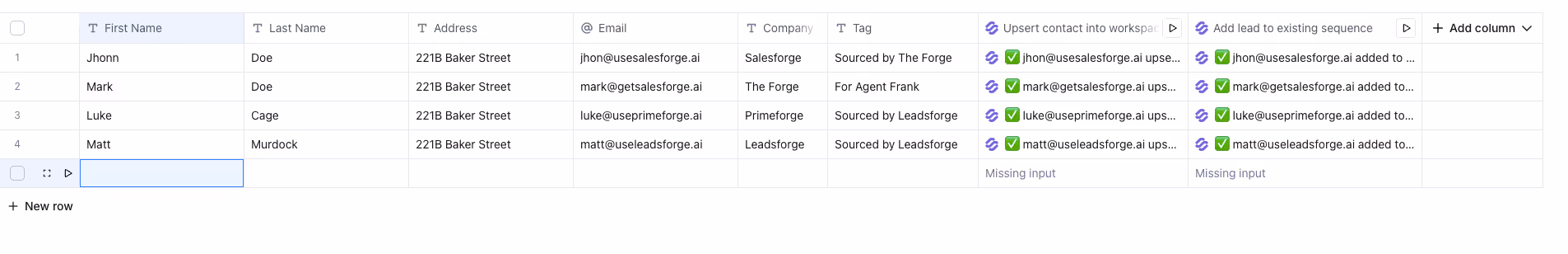 • Run the enrichment and your leads appear in Salesforge instantly.